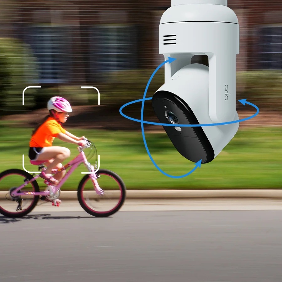 Med Arlo Essential 3 2K outdoor Pan-Tilt-Zoom får vi en lättanvänd kameraövervakning med 360graders vy och smart panorering.