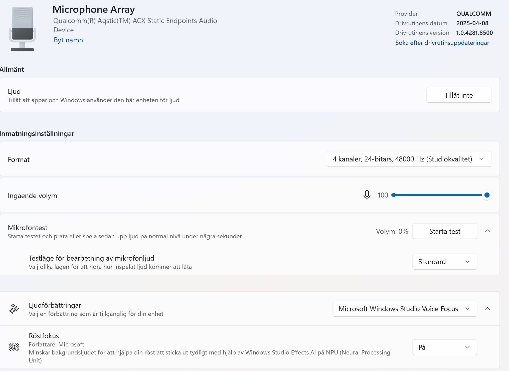 Under skalet finns Qualcomms senaste ARM-baserade plattform i form av Snapdragon X Elite (12 kärnor, upp till 3,4 gigahertz, 42 megabyte cache) som för vårt testexemplar eller Snapdragon X Plus (10 kärnor, upp till 3,4 gigahertz) som alternativ. Dessa kompletteras av en integrerad Qualcomm Adreno GPU med stöd för DirectX 12 samt en kraftfull Hexagon NPU som levererar upp till 45 TOPS, vilket gör datorn till en certifierad Copilot+ PC med inbyggda AI-funktioner. Det är även här som vi ser några av de stora vinningarna med enheten, för att i takt med allt fler appar får fullt stöd för just Arm så som Adobe, så kan vi även använda den fulla AI kraften i dessa program.