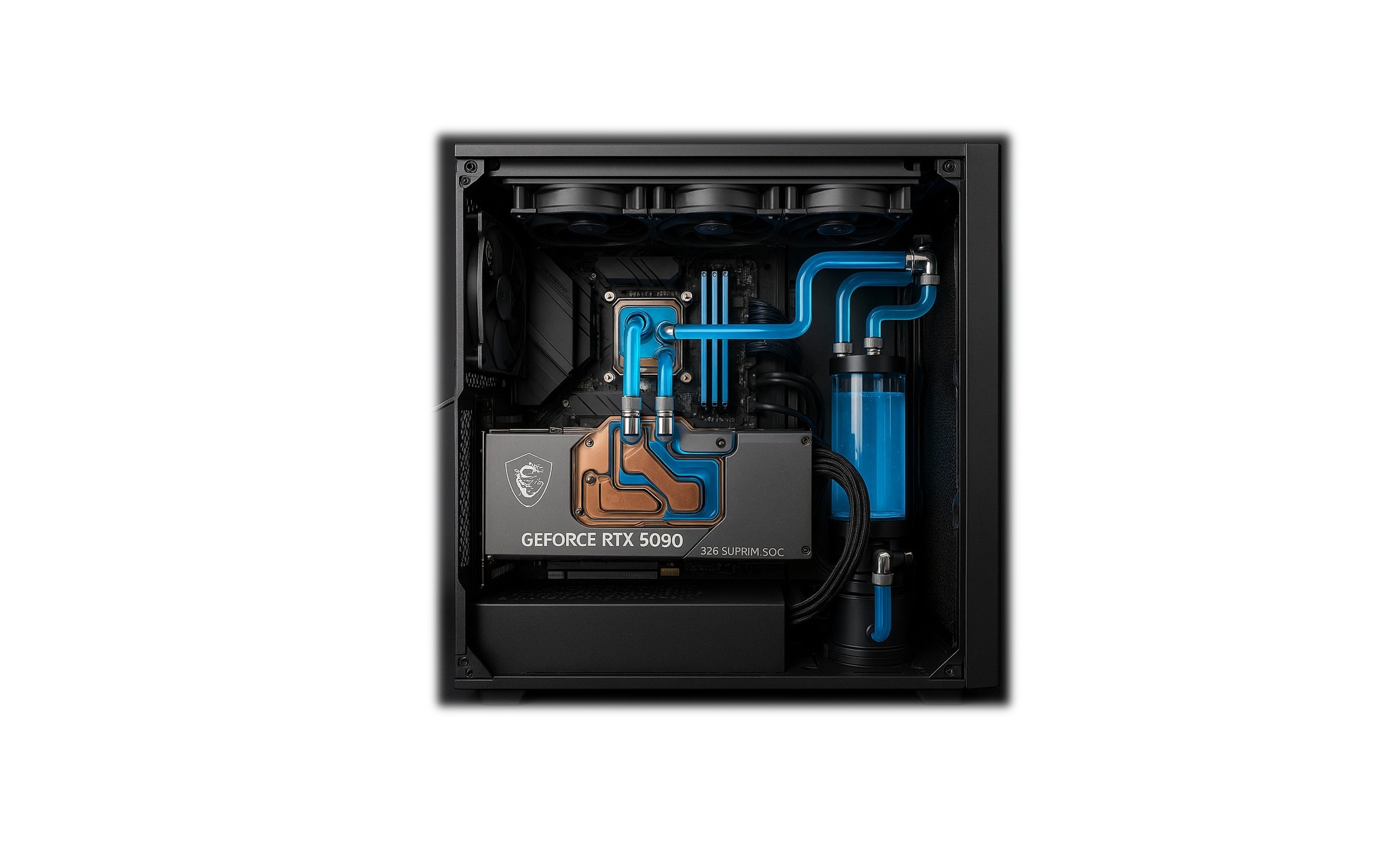 Eftersom RTX 5090 genererar så mycket värme, framför allt i överklockat läge, rekommenderas minst en 360 eller 420 millimeters radiator men gärna två där vi med fördel kan kombinera olika storlekar baserat på vårt chassi. Även radiatorernas tjocklek (30–60 mm) har så klart en direkt påverkar på både kylkapacitet och chassikompatibilitet, så som sagt var, tänk efter innan vilket så klart även gäller både pumpar och reservoarer.