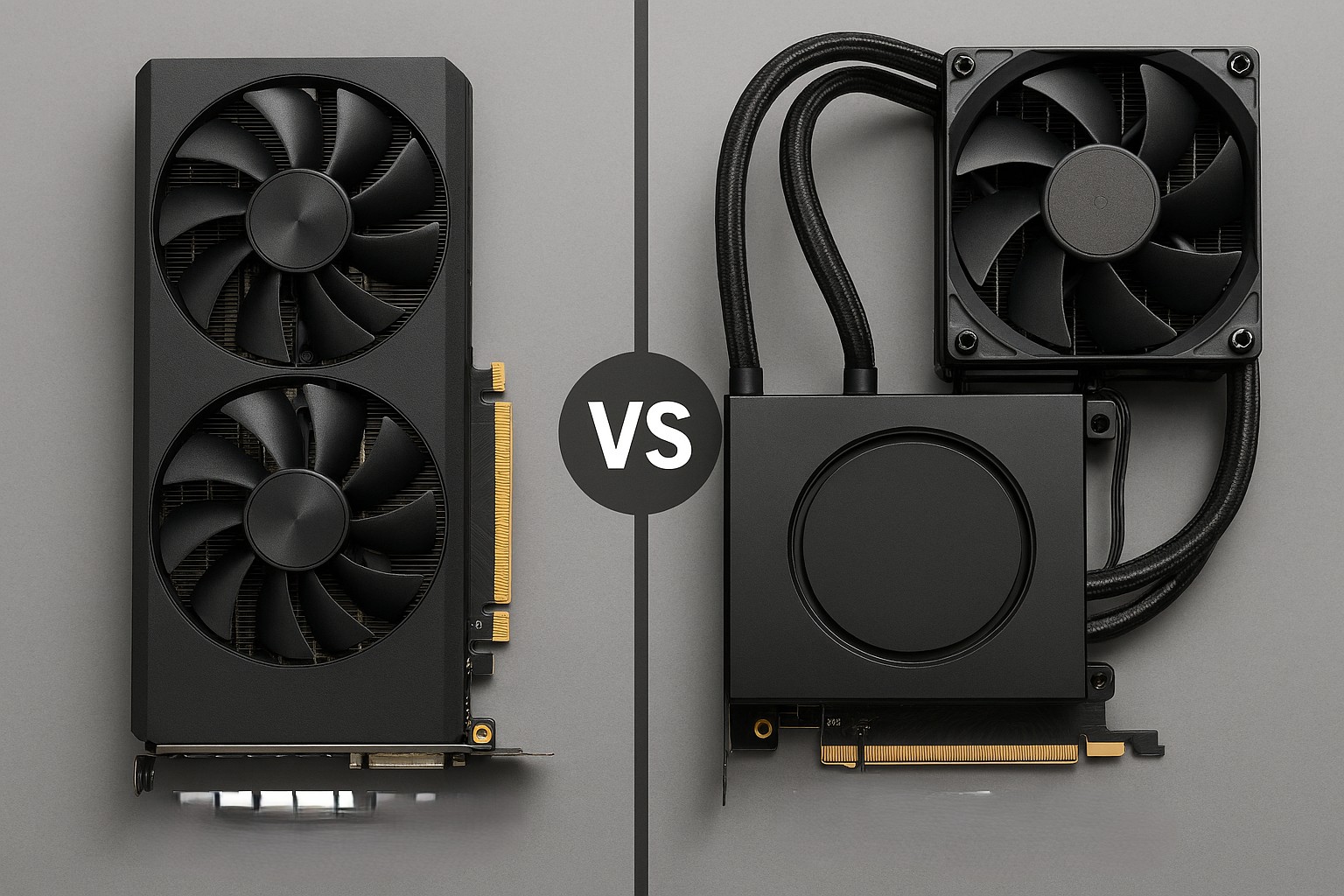 Hybridlösningar är lite av ett mellanting där GPU kärnan kyls med vatten medan VRM och minnen kyls med en traditionell luftkylare. Detta minskar komplexiteten jämfört med fullskaliga vattenblock och gör installationen enklare. Radiatorerna är ofta mindre, vanligtvis 120 eller 240 millimeter, eftersom värmeutvecklingen är lägre när endast GPU delen kyls med vatten.